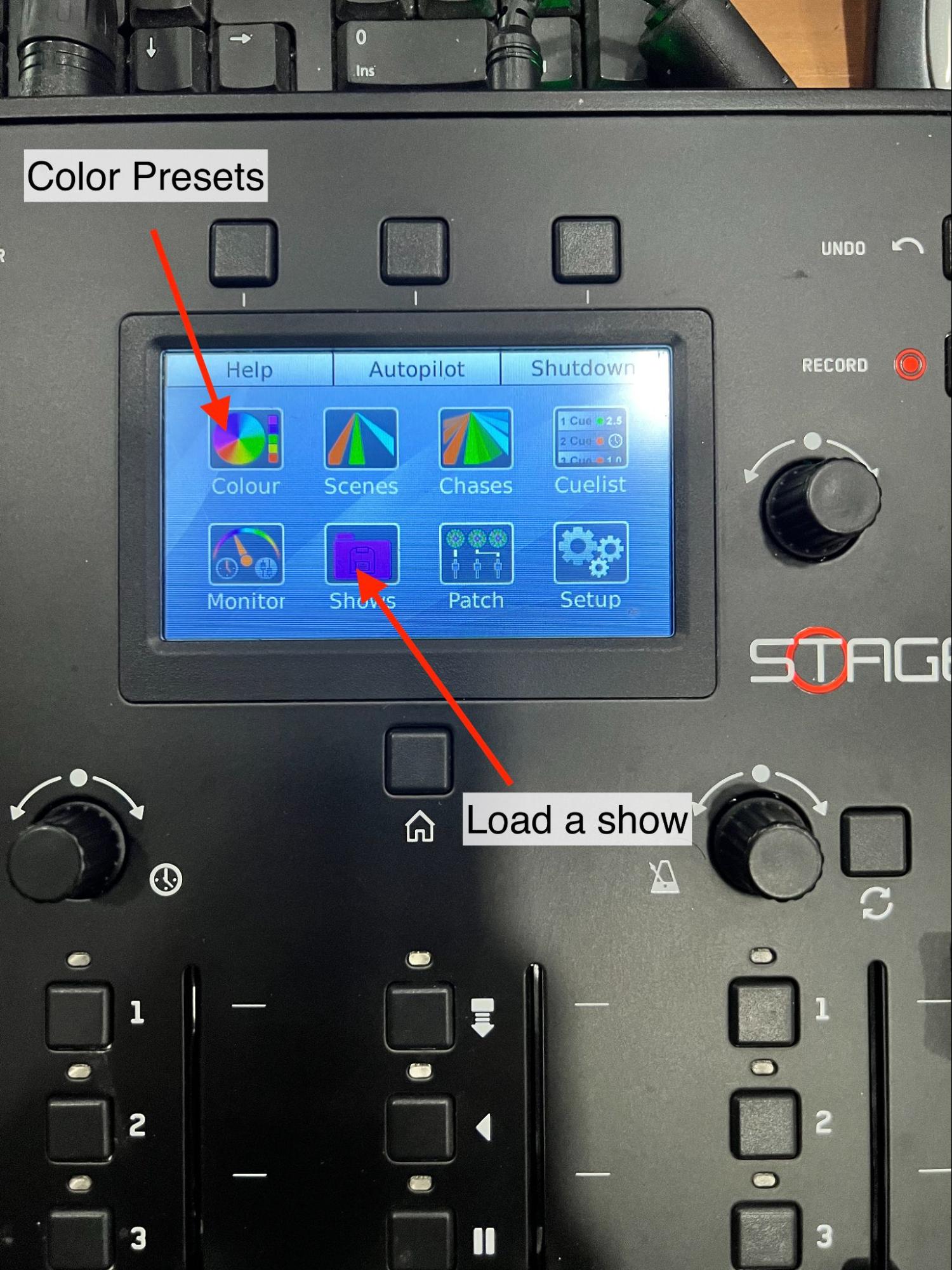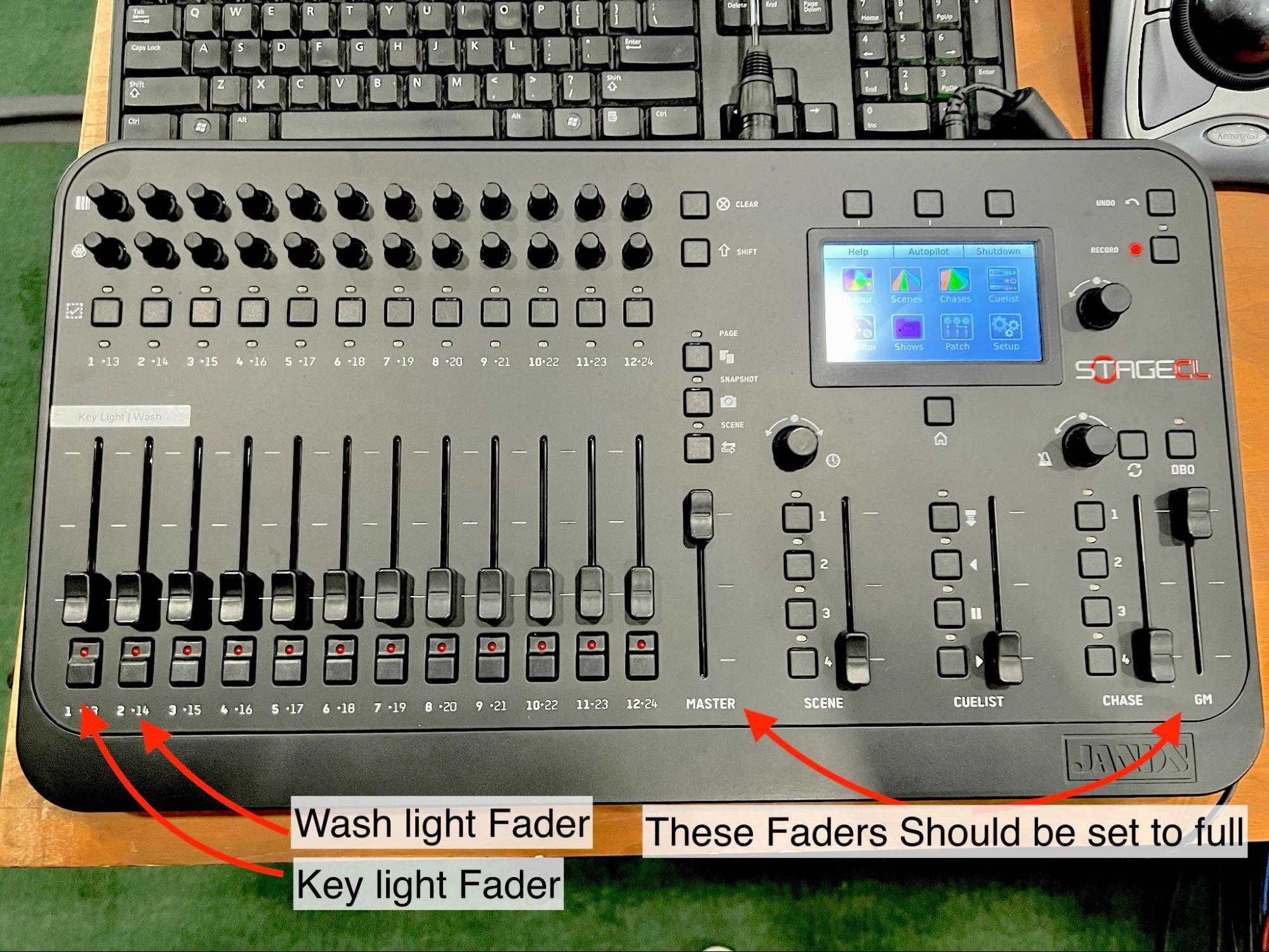 This page explains the basic layout of the Atrium Jands Stage CL console, how to change wash light color, and how to reload the Atrium show file if the console is not behaving as expected.
